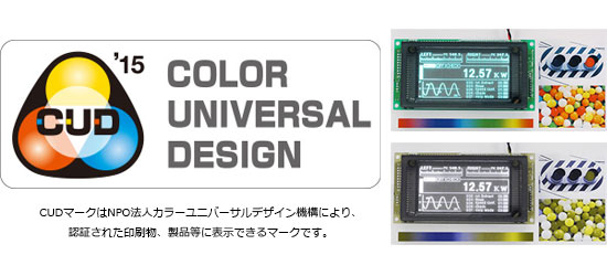 VFDは色覚の個人差を問わず多くの人に見やすいディスプレイとして、代表2品番において「カラーユニバーサルデザイン認証」を取得しております。単色でも見やすく、UI設計でデザイナーが配色を考慮する必要がありません。詳細はこちらをご覧ください。